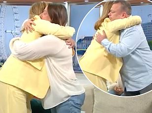 As they finished up a chat with Martin Lewis,Kate's co-host Ed Balls said: 'I'm just going to say,Kate Garraway for her fabulous documentary Derek's story is also nominated for an NTA.'