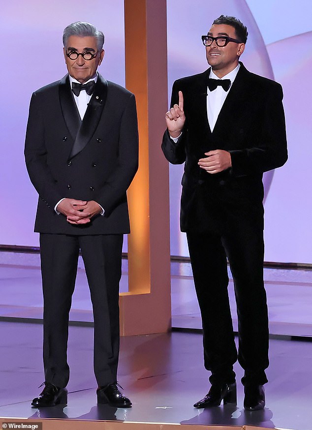 The pair kicked off the evening at LA’s Peacock Theater with a subtle dig at the evolving TV industry,with Dan referring to The Emmys as 'broadcast TV’s biggest night for honoring movie stars on streaming services.'