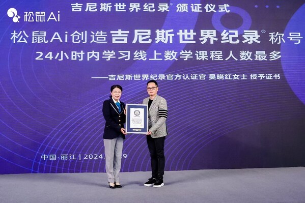 Mr. Zhou expressed his gratitude to Guinness World Records for the recognition and opportunity,as well as to all Squirrel Ai Learning students who contributed to this historic feat.