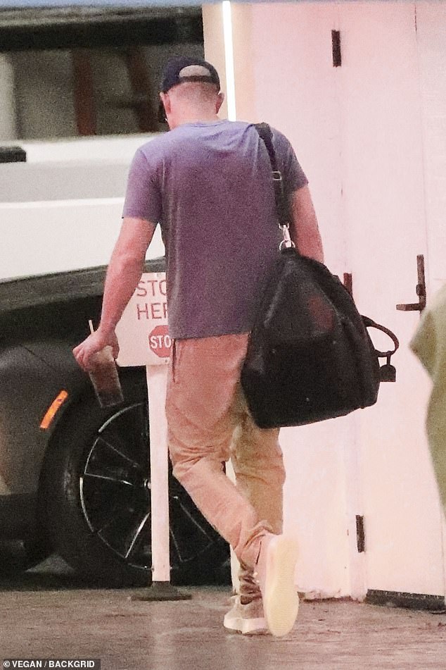 Carrying a large black bag,the film star completed his look with a navy cap.