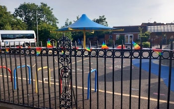 Westmeads Community Infant School in Whitstable,Kent,has put up a large rainbow flag and 10 smaller ones on its outer fence to mark Pride month.