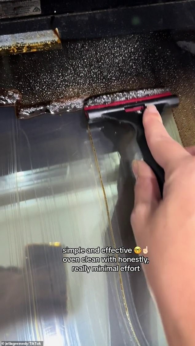 'I'm going to show you how I did a really quick,simple and effective oven clean with minimal effort. I bring a "work smarter not harder" vibe,' she said in the TikTok.