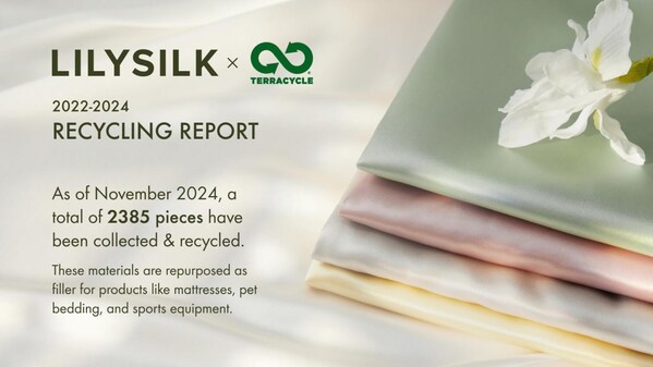 NEW YORK,Jan. 4,2025 -- LILYSILK,the world's leading silk brand with a mission to inspire people to live better,more sustainable lives,announced the third anniversary of its partnership with TerraCycle. As of this November,the collaboration has recycled more than 2,385 pieces,totaling 1,404.5 pounds of textiles. LILYSILK invites customers to join a renewed no-waste recycling initiative to celebrate this milestone,offering loyalty points,discounts,and limited-time rewards.