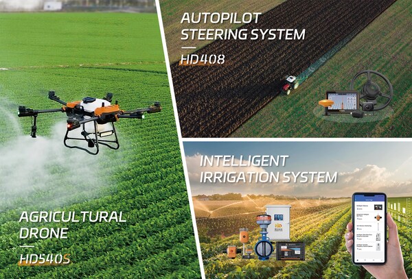 Huida Technology’s agricultural drones,autopilot steering system,and intelligent irrigation product displays