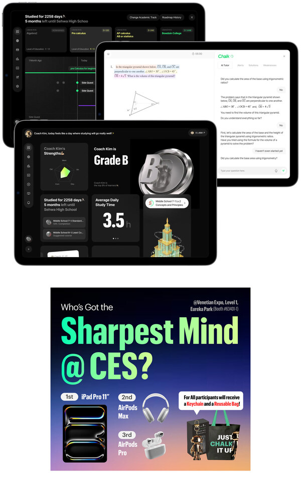 LAS VEGAS and SEOUL,South Korea,Jan. 6,2025 -- Seomjae,a rising EdTech startup from Korea,set to make a splash atCES 2025 with its brand-new AI learning platform,CHALK. The company first unveiled CHALK during CES 2025 Unveiled on January 5 at the Mandalay Bay Convention Center (Level 2). Then,from January 7–10,Seomjae will host a special Math Challenge at the Venetian Expo Level 1,Eureka Park (Booth #63401-1)—giving CES attendees two exciting opportunities to experience the future of hyper-personalized learning.