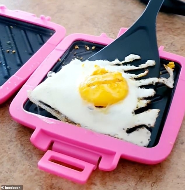 'It worked,' the delighted mum said as she opened the toastie maker to reveal the cooked egg.
