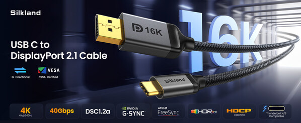 NEW YORK,Sept. 3,2024-- Silkland,a tech brand specializing in cables and accessories,has released the first-ever 16K VESA-certified USB C to DisplayPort 2.1 cable to support the future of visual displ