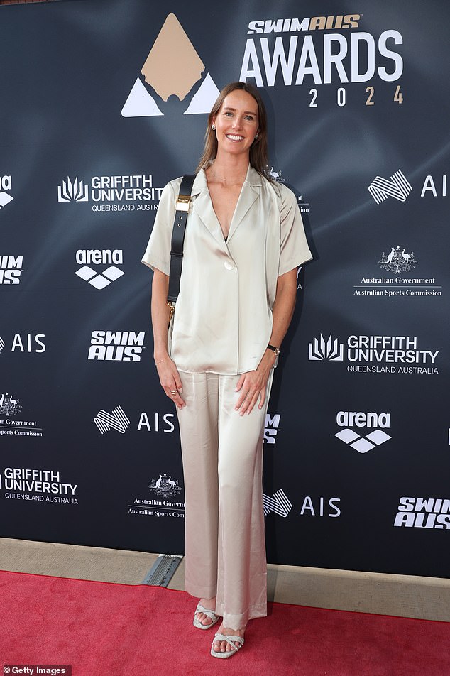 Emma McKeon led the celebrity arrivals on Saturday when she put on a very glamorous display at the Swimming Australia Awards ceremony in Brisbane.